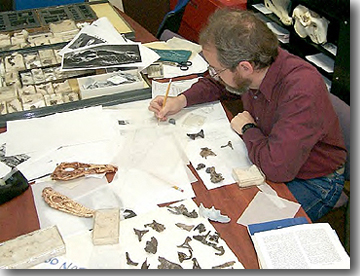 Numerous exhibits utilize my art, including the American Museum and Smithsonian. My skeletal reconstructions remain instrumental to independent resin scale model dinosaur sculptors over the last 20 years.** Exhibits design and set up work includes a conference on fossil dinosaurs and birds held in Ft. Lauderdale, the Chicago DinoFest 2000, and I was science advisor and artist for the new dinosaur hall at the Maryland Science Center featuring a full size sculpture of the giant dinosaur Astrodon being attacked by Acrocanthosaurus produced by Hall Train following my design. Other full scale prehistoric model designs include the semi-robotic flying Quetzalcoatlus model for Paul MacCready, and currently I am cooperating with Peter Dilworth at MIT on developing small, mobile dinobots. Field experience includes finding and excavating dinosaurs.
