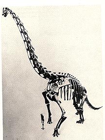 Galton, Peter M. Skeleton of ornithopod dinosaur Camptosaurus from Upper Jurassic of England.
